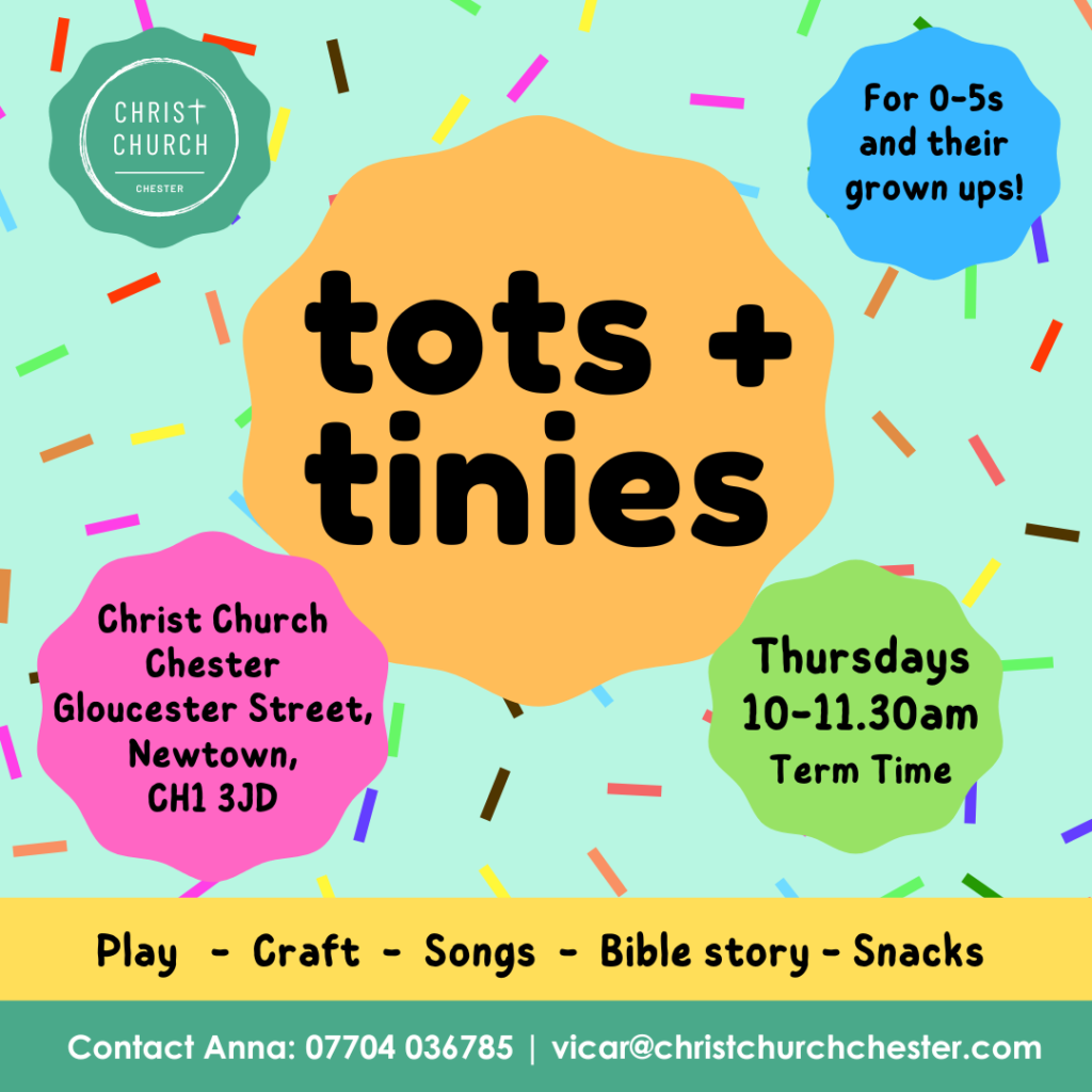 Tots & Tinies is a fun, relaxed Thursday morning toddler group for 0-5s and their grown ups! You can expect lots of opportunities for your little ones to play, read, sing, get creative and hear a Bible story. There is also tea and coffee on tap for parents and a mid-way snack for children and adults alike. We’d love to see you there on Thursdays in term time!